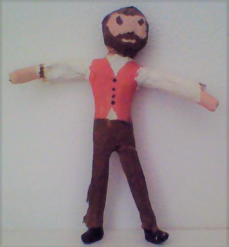 The film begins with the lead character about to be hung on the bridge, then as the rope apparently breaks, he drops into the river and swims to freedom. Running through the woods he arrives at a house where he finds the woman he loves and is about to embrace her when his illusion suddenly ends with his actual execution. In the scene where he comes up in the water a deeply moving song begins with the lyrics “A livin’ man. A livin’ man. I wanna be a livin’ man.” The complete song is heard in the first one and a quarter minutes of this clip which one should watch and listen to before continuing to read my essay. Moving from the man the camera turns to the things he is seeing and hearing with heightened sensibility – sunlight through a tree canopy, a centipede traversing a leaf and a spider on a web. Exquisitely expressing the immediacy, vibrance and preciousness of life, the clip also conveys the truth that living involves active immersion in a living world. My seventh grade school mates and I watched The Twilight Zone episode, and the next day in art class one of them made a paper mâché figure of the livin’ man. I was so captivated by the doll that she gave it to me, and to this day it stands on my dresser – an icon of livin’. Picasso said, “Art is a lie that makes us realize truth,” and this is why the clip is so powerful: it represents the fulfillment of people’s ultimate desire, which is to be livin’.